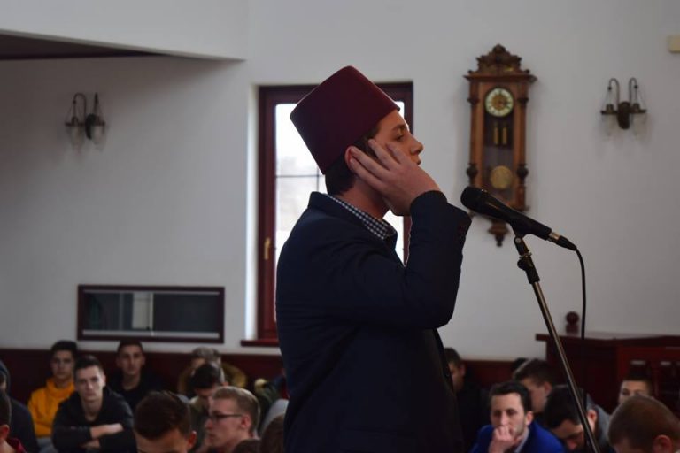 ŠKOLSKO TAKMIČENJE U UČENJU EZANA Utorak, 25.12.2018. godine Hafiz Zijad Dervić, profesor u našoj Medresi je prije 6 godina pokrenuo takmičenje u učenju ezana. Hvala